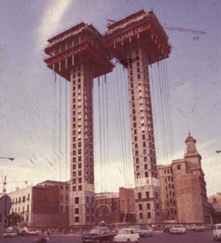 Javier Manterola, desde la Oficina Técnica de la empresa constructora Huarte y Cía., y trabajando en la Oficina de Proyectos junto con Carlos Fernández Casado y Leonardo Fernández Troyano, tuvo una intervención destacada en el proyecto de las estructuras de tres edificios muy importantes en Madrid: las Torres Colón, de Antonio Lamela; el Banco de Bilbao, de Francisco Javier Saenz de Oiza, y el edificio del Banco de Santander, de José Antonio Ridruejo. En tu opinión, ¿tuvieron algún impacto en el mundo de la arquitectura en su momento? En tu caso no es conocida una aproximación a edificios en altura.
