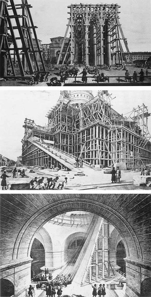 Entre 1816 y 1824 Betancourt fue nombrado director de Construcción de la ciudad de San Petersburgo y ayudó a Montferrand, nombrado arquitecto jefe de la construcción de la catedral de San Isaac, a desarrollar un proyecto para transportar desde Finlandia unas columnas monolíticas de granito para las columnatas por medio de unas embarcaciones especiales diseñadas por el escocés Charles Baird, creador de los primeros diseños de barcos de transporte fluvial en el rio Neva. De hecho, la lápida de la tumba de Betancourt fue diseñada por su alumno Montferrand, quien más tarde erigiría la columna de Alejandro en honor a Alejandro I, el vencedor de Napoleón. Este monumento de San Petersburgo es hasta el día de hoy, la columna monolítica de granito más grande del mundo. Tiene una altura de fuste de 25,6 metros y pesa 600 toneladas. En esta columna, todo el trabajo de montaje e instalación de andamiajes se realizó de acuerdo con el diseño detallado de Betancourt, usado también para las columnas de la catedral de San Isaac, con la ayuda de un andamio especial en el que las piezas se atornillaban entre sí para así reforzarse.