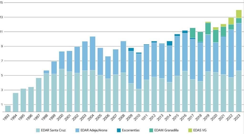 Volumen de agua aportada a los sistemas de reutilización de Tenerife