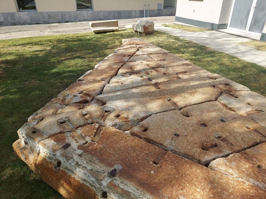 El pavimento llegó al Museo en 1967, tras el revestimiento del tramo urbano del canal Martesana. Colocados en los jardines durante más de cincuenta años, los bloques fueron estudiados, y en 2021 se restauraron y volvieron a montar, reconstruyendo el complejo sistema de enclavamiento de los elementos de piedra (8).