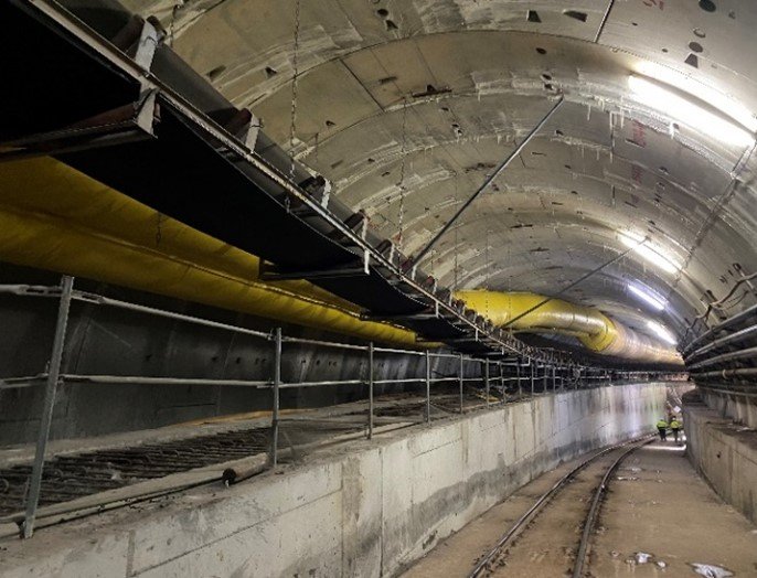• nueva disposición de la cinta, ventilación, servicios lineales y vía del tren tuneladora.