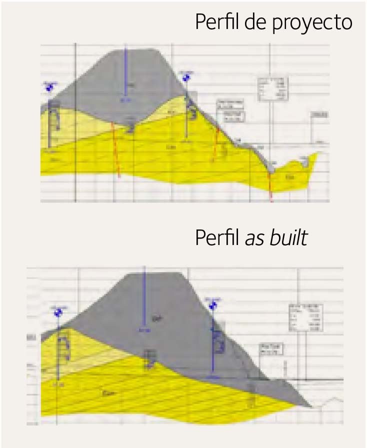 Durante las labores de asistencia, y gracias a la información facilitada por los frentes de excavación levantados, se reinterpretaron los perfiles geológico-geotécnicos realizados en fase de proyecto (véase figura 6).