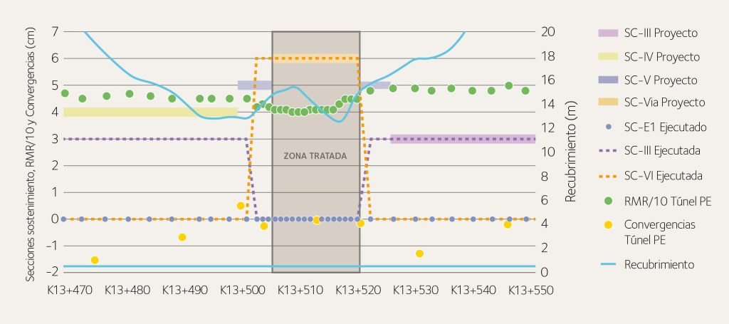 Se realizaron de manera periódica una serie de informes mensuales de seguimiento y de control de las excavaciones con objeto de garantizar el control y la calidad de las mismas. A medida que se iba avanzando en metros excavados durante la construcción, se fue realizando una evaluación del tipo de sostenimiento instalado, comparándolo con la longitud inicialmente prevista en la tramificación del proyecto.