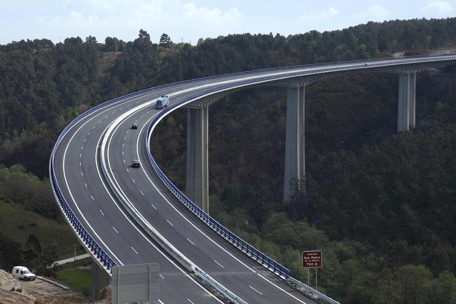 Entre 2007 y 2010 afrontamos otro reto: el puente de San Pedro de la Ribera en la A8 en Asturias, construido en 1989; era un voladizos sucesivos muy curvo de 750 m de longitud, 150 m de vanos principales y unos 100 m de altura de pilas. Estaba previsto construir un puente paralelo al existente para desdoblar la A8 en aquella zona, pero nos llamaron, dada nuestra especialización en puentes de voladizos sucesivos, para examinar la posibilidad de ampliar el ancho del tablero desde los 12 m originales a más de 23 m. Y así fue. El proyecto ha sido, seguramente, el más complejo al que hemos tenido que hacer frente y solo pudo ser llevado a cabo por la intervención decisiva de José Antonio y por la colaboración del excepcional equipo de Torroja. En este proyecto, José Antonio aportó su dominio de la geometría (dispusimos un pretensado exterior —recto, evidentemente— dentro de un cajón muy curvo), su clarividencia del comportamiento estructural de los puentes (el citado pretensado exterior lo utilizó para reducir los esfuerzos de torsión inherentes a la curvatura) y su experiencia y dominio de la técnica (tuvimos que recurrir a todos los mecanismos disponibles para transmitir los esfuerzos extra del tablero a la pila en su empotramiento para poder hacer realidad el encargo recibido). Otra vez, la implicación de José Antonio en un proyecto complejo y en la propia obra fue encomiable. Por cierto, que, al fin y a la postre, esta obra fue la responsable de que José Antonio consiguiera algo que nadie de los que le conocimos creíamos que fuera capaz de hacer: dejar de fumar.