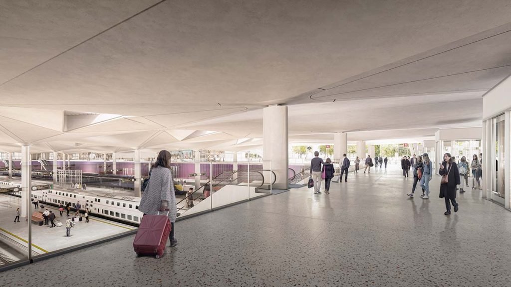 El análisis del estado actual, determinado a reparar la actual cicatriz que ha aislado la estación potenciando su integración en el entorno urbano circundante, ha constituido uno de los principios de la propuesta: resolviendo el hub de movilidad; optimizando los flujos; creando espacios abiertos que mejoren la accesibilidad, la conectividad con otros medios de transporte y la experiencia de los pasajeros; y haciendo hincapié en la creación de espacios flexibles y polivalentes para adaptarse a las necesidades cambiantes de la estación a lo largo del tiempo.