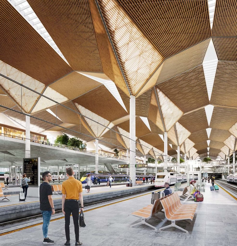 En primer lugar, la imagen global de la estación. Debe integrarse perfectamente en el paisaje y en un entorno urbano activo. Es una estación que existe en el corazón de la naturaleza y la abraza, un símbolo de regeneración urbana para Madrid y para toda España.