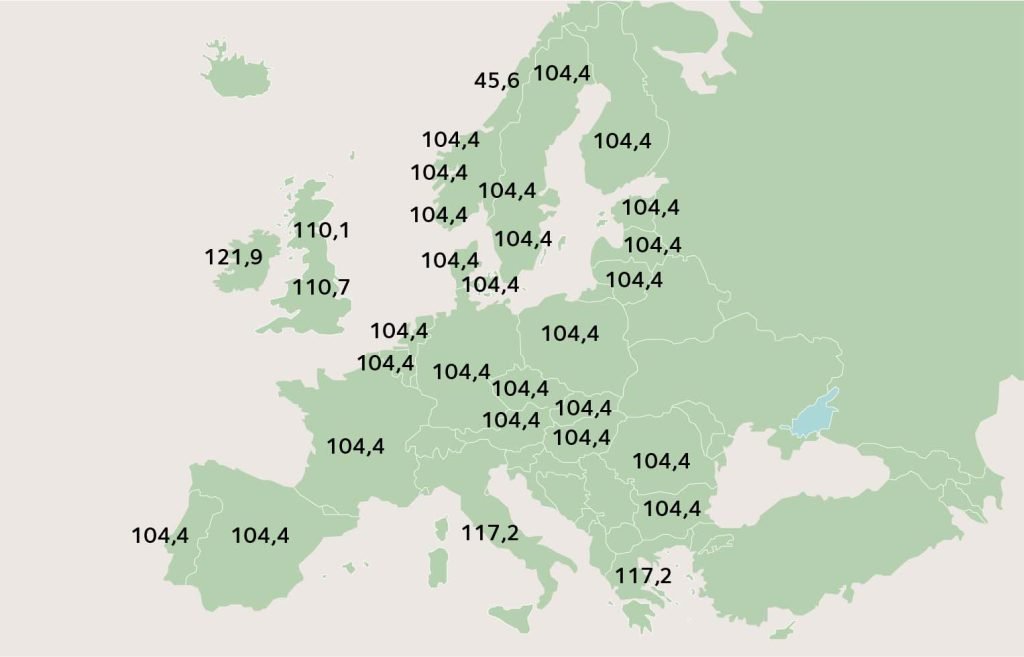 Lógicamente, la convergencia de precios a nivel de toda Europa es más compleja, ya que existe la limitación física de la capacidad de las interconexiones, cuyo desarrollo tiene la complejidad habitual asociada a la construcción de grandes infraestructuras entre países. No obstante, ha propiciado la aparición de muchas horas con un fuerte nivel de acoplamiento. Valga como ejemplo este gráfico del día 4 de mayo de 2023, con indicación del precio €/MWh por país, donde se observa su elevado grado de convergencia.