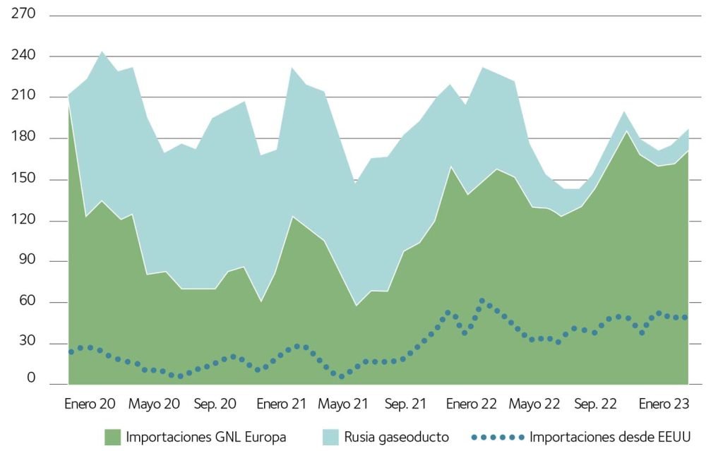 - incremento de gas natural licuado (GNL) que llegaba a Europa desde EE. UU.;
