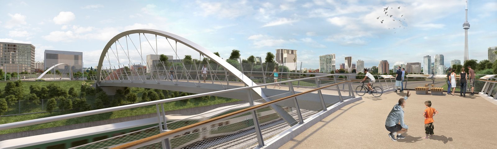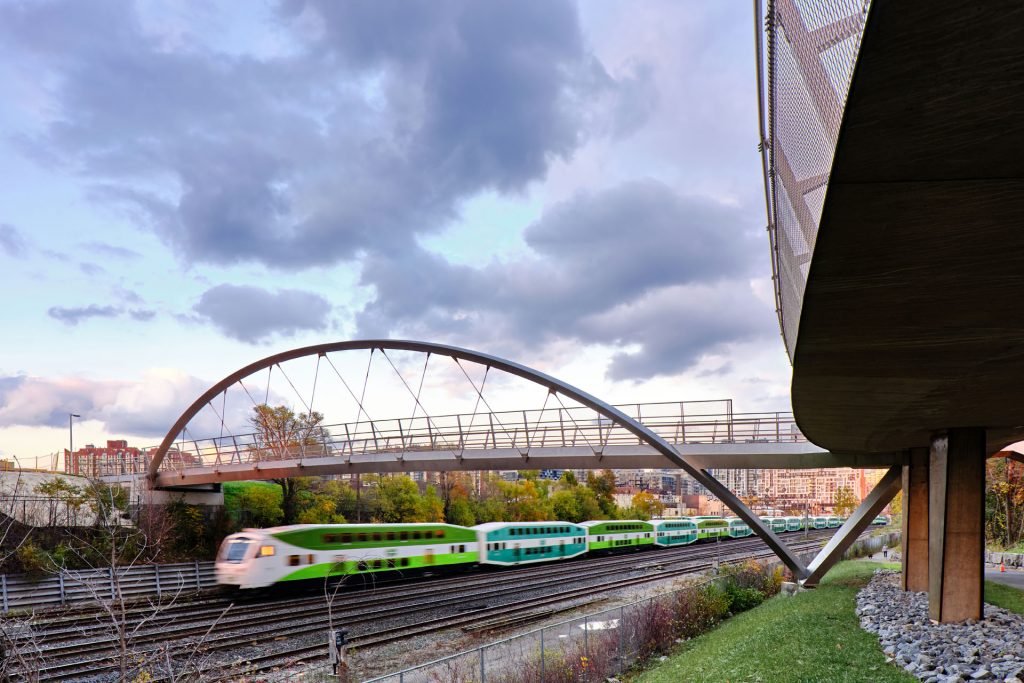 Toronto, al igual que muchas otras grandes urbes, ha desarrollado en los últimos años numerosas actuaciones para fomentar modos de transporte más sostenibles, como la movilidad peatonal y de ciclistas. Entre estas iniciativas, se encontraba la construcción de dos puentes peatonales para cruzar uno de los corredores ferroviarios de mayor tráfico en Canadá, al norte del enclave histórico de Fort York y la guarnición.