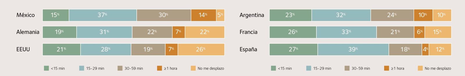 Duración media de un trayecto diario al trabajo/centro de estudio. Distribución porcentual de respuestas