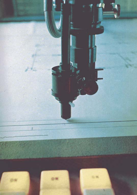 Posteriormente se incorporó al gabinete un sistema de dibujo que consistía en un ordenador Hewlett Packard 2.100 con cinta magnética y lectores de tarjetas y cintas perforadas y un plóter Xynetic 1100. Su tamaño permitía el dibujo en formato hasta DIN A0 con una cabeza flotante por colchón de aire que permitía cuatro espesores de plumas. El papel se fijaba a la base mediante la absorción.